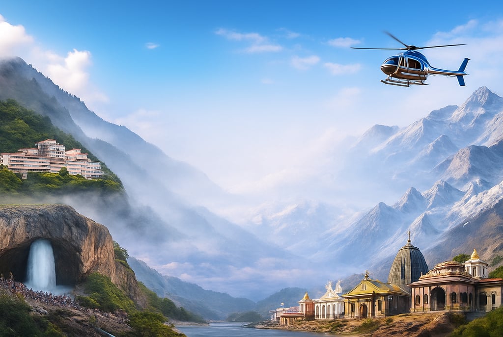 Book your helicopter tours to Vaishno Devi, Chardham, Amarnath, and Delhi with ease.